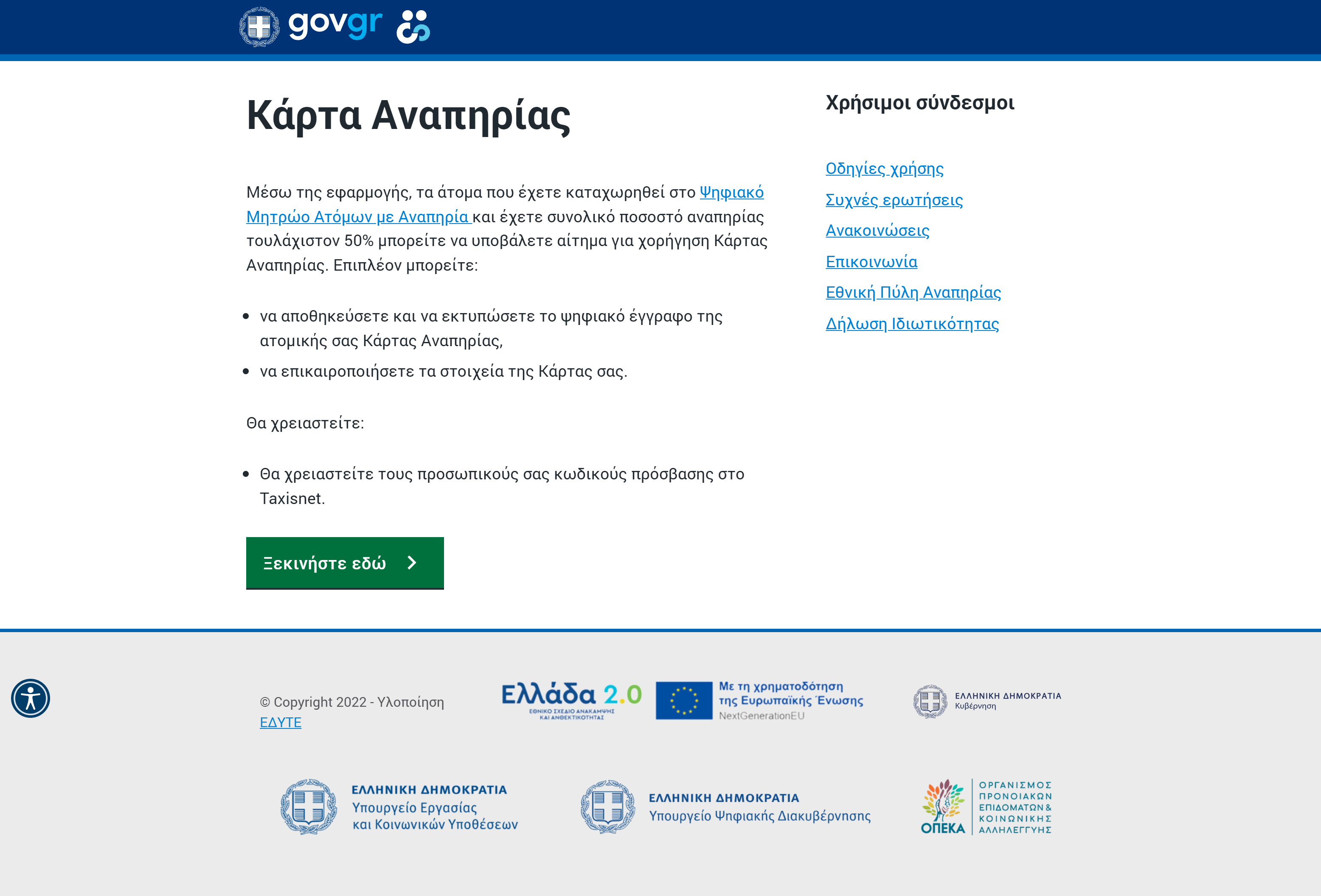 Through the application, people who are registered in the Digital Register of Persons with Disabilities and have a total disability rate of at least 50% can submit a request for a Disability Card.
