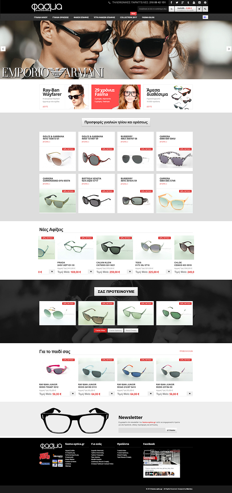 With 4 stores in Piraeus, Glyfada, Athens and Thessaloniki, 25 years experience, modern art laboratories, FASMA OPTICAL STORES could not abstained from the area of online shopping. MainSys creating a new and revamped online store fasma-optica.gr raises the bar of online shopping high.