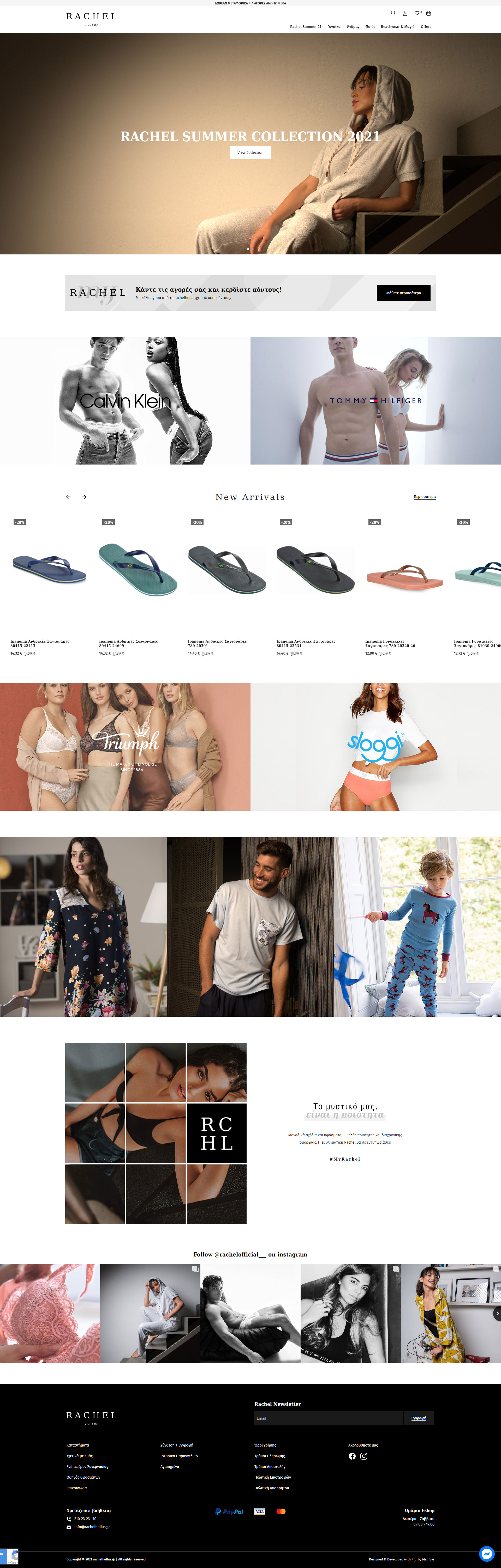 Since 1980, Rachel has been established in the production of lingerie, homewear, and beachwear. Throughout the 4th successful decade in the field, the emblematic brand Rachel, designs products of high quality and aesthetics, following the fashion trends and remaining consistent in the value of classic and timeless clothing.